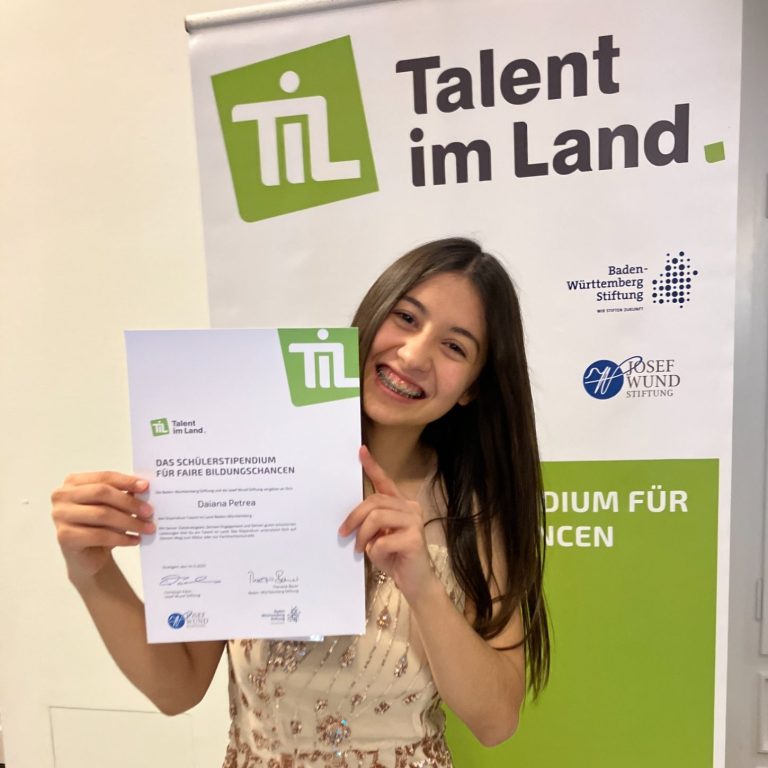 Die Zehntklässlerin Daiana Petrea wurde für das Förderprogramm "Talent im Land" ausgewählt und gehört zu den 53 Stipendiat*innen des Jahrgangs 2025. Beim Festakt am 14. November in Stuttgart wurde sie offiziell aufgenommen.